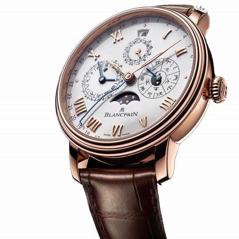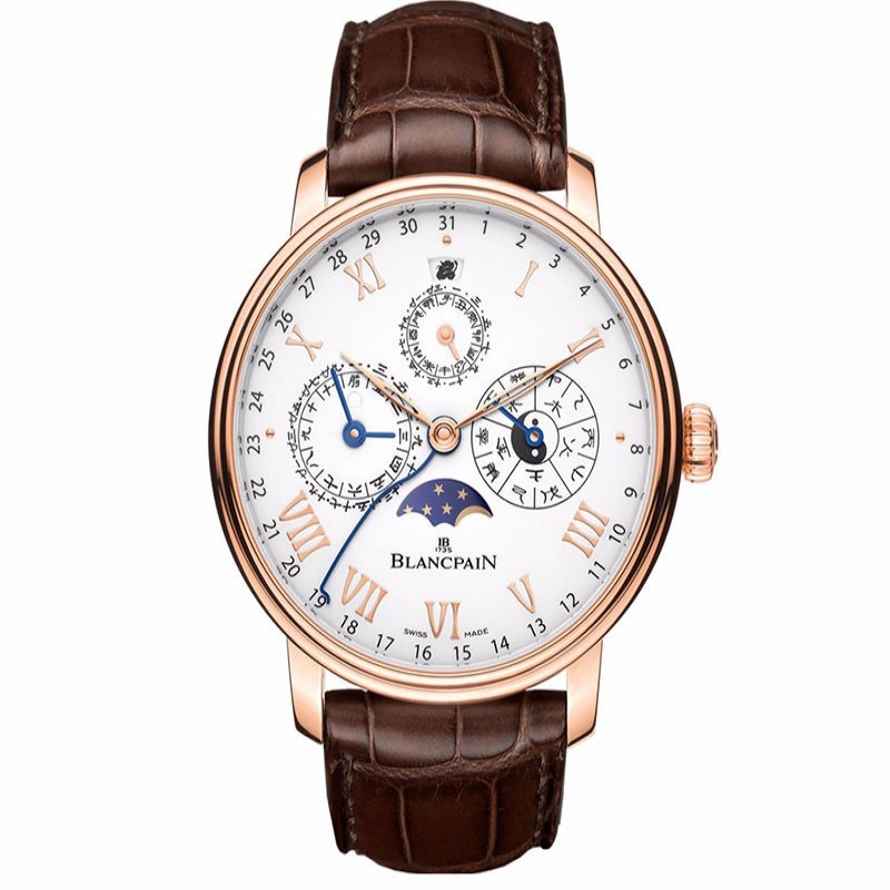 BLANCPAIN/宝珀 villeret系列 中华年历 玫瑰金鳄鱼皮带 男士机械腕表 00888-3631-55B