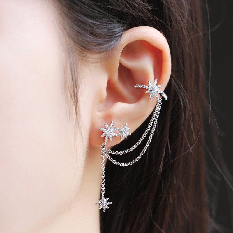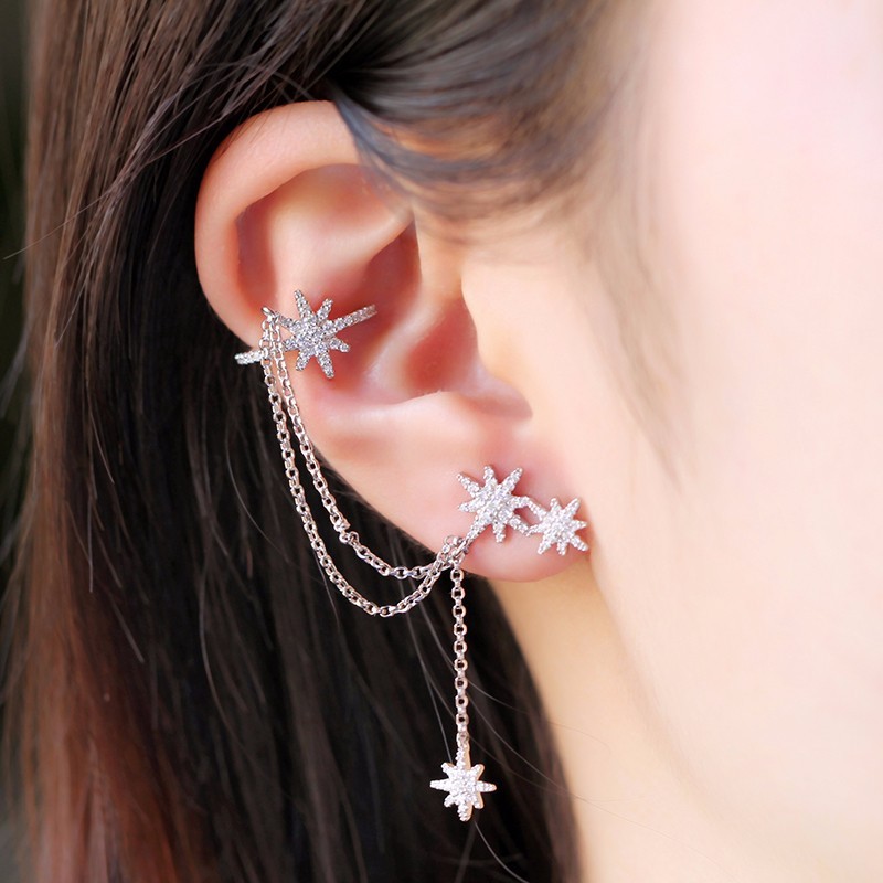 【周冬雨 宋茜同款】APM Monaco/APM Monaco单只六芒星流星链条流苏耳钉女耳夹 ins风气质时尚耳环耳坠 11547 送女友情侣闺蜜礼物银首饰品【北京同城闪送】
