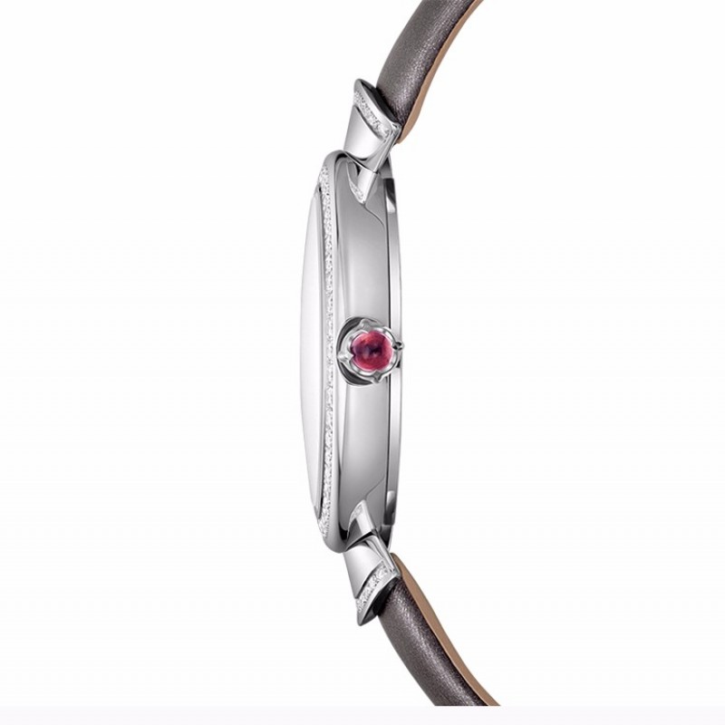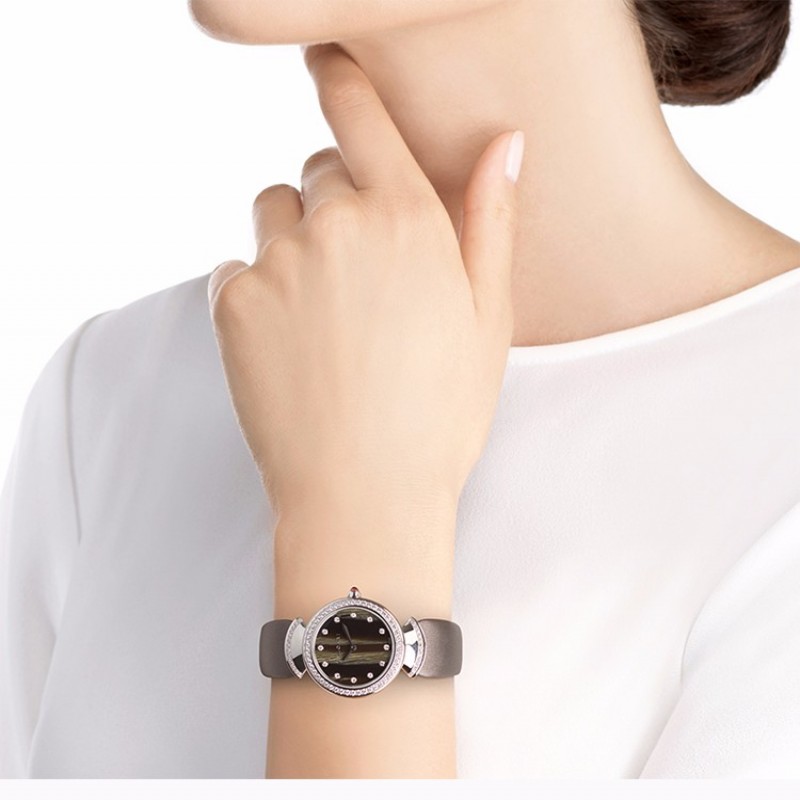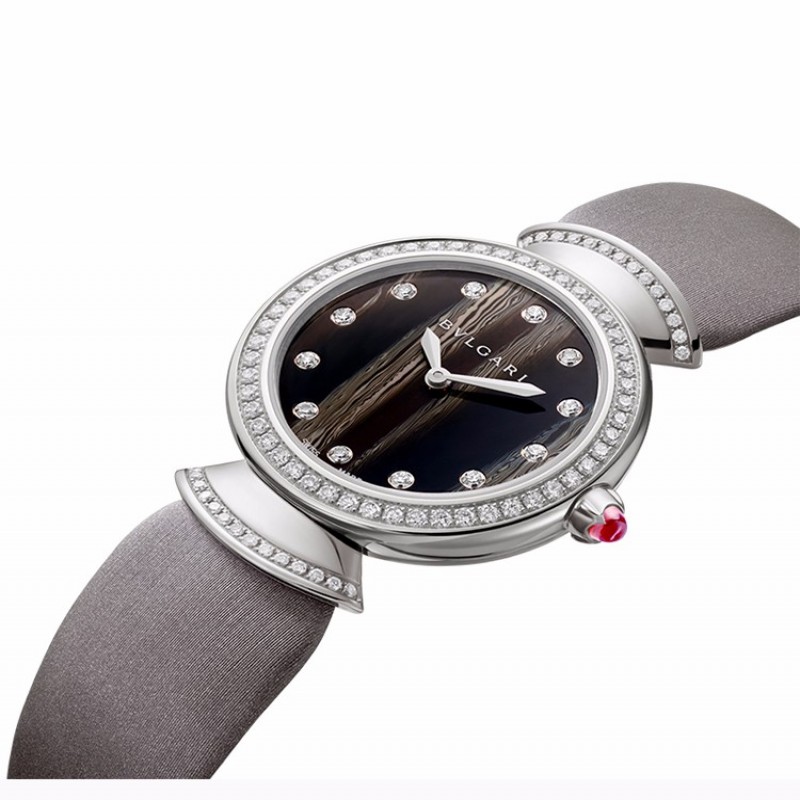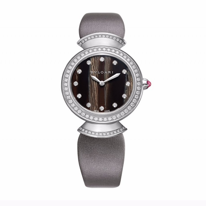 BVLGARI/宝格丽 DIVA系列 女士棕色缎面表带白色18K金表壳石英表手表女表 102434