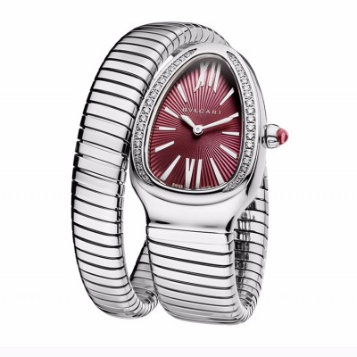 BVLGARI/宝格丽 Serpenti系列 女士明亮式切割钻石镶饰钢制表壳紫罗兰漆面表盘石英表手表女表 102530