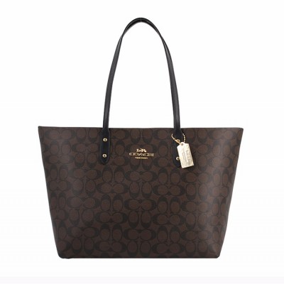 【包邮包税】COACH/蔻驰 【20春夏新款】女士卡其色经典C纹印花大号托特包单肩包手提包女包 F76636IME74