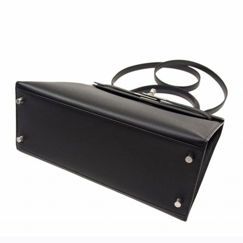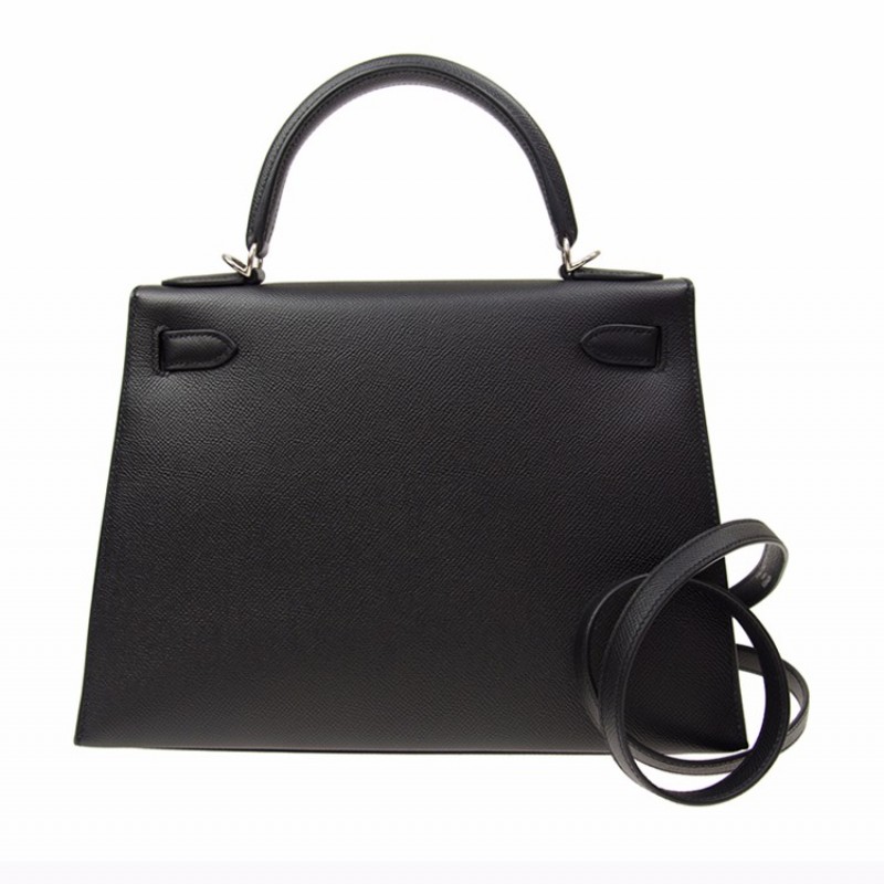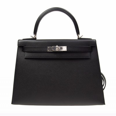 【包邮包税】Hermès 爱马仕 KELLY 28 女士黑色银扣单肩包手提包