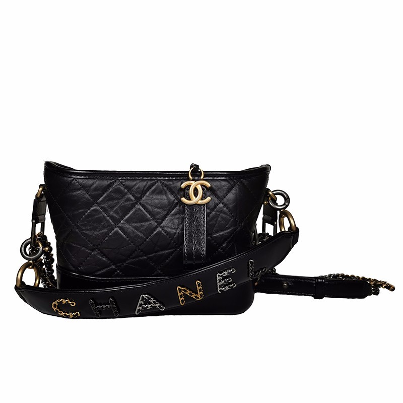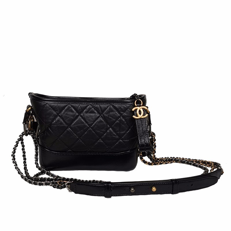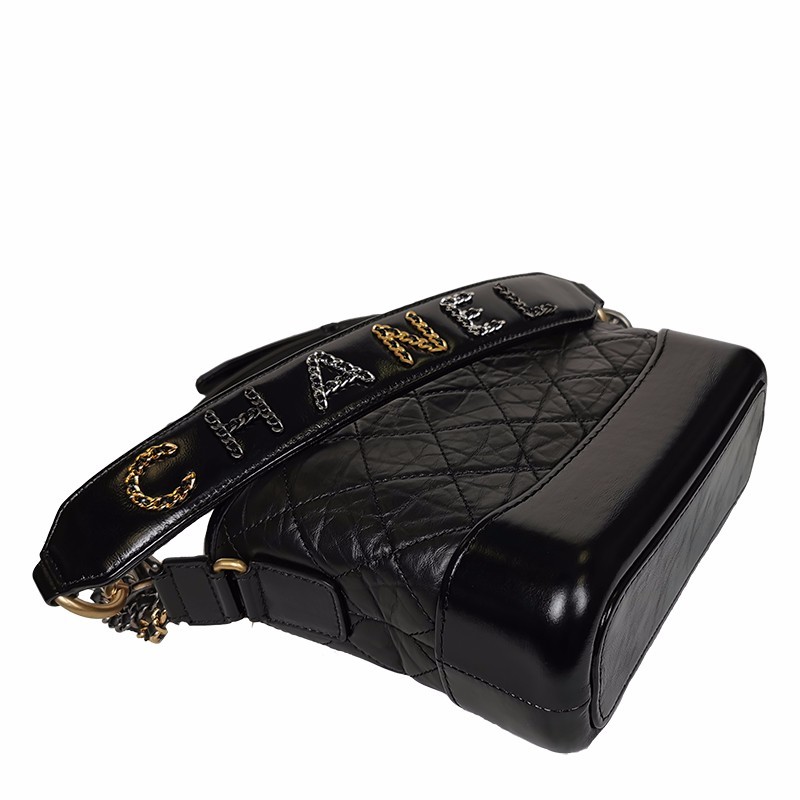 【包邮包税】CHANEL/香奈儿 经典Gabrielle系列 黑色自然纹理小牛皮金银拼色链条单肩斜挎流浪包