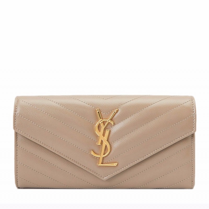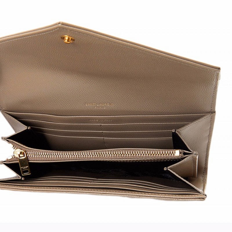【包邮包税】 SAINT LAURENT PARIS YSL 圣罗兰 信封手拿包钱包女包 经典金属 logo 灰色牛皮 372264-BOW01-1722