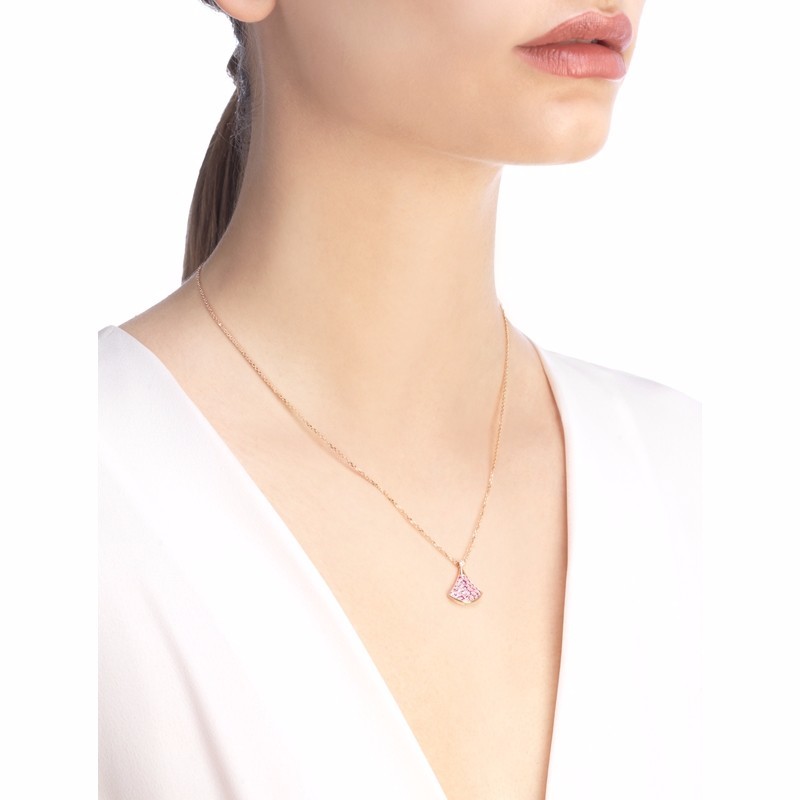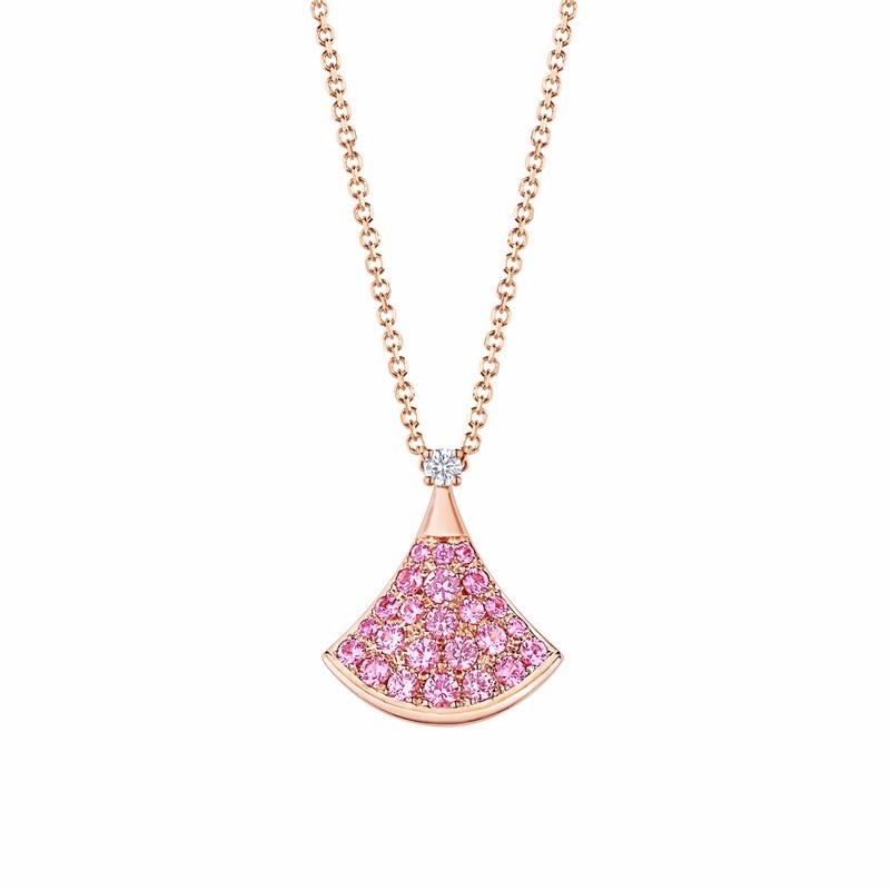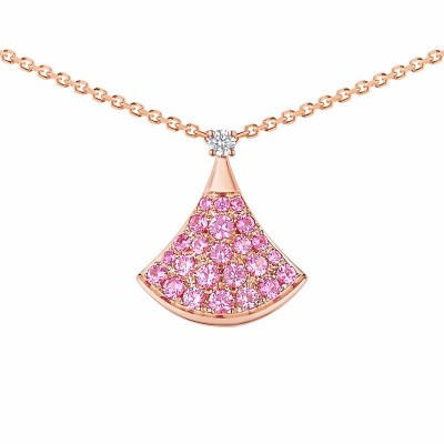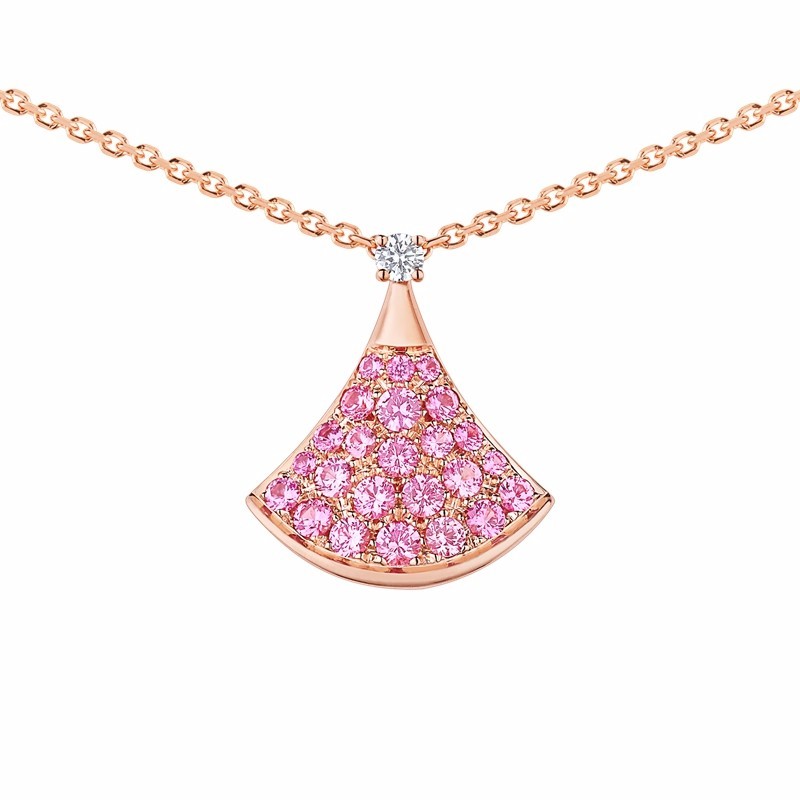 【包邮包税】BVLGARI/宝格丽 DIVAS'DREAM经典款钻石18K金玫瑰金密镶粉红蓝宝石 小扇子项链 355889