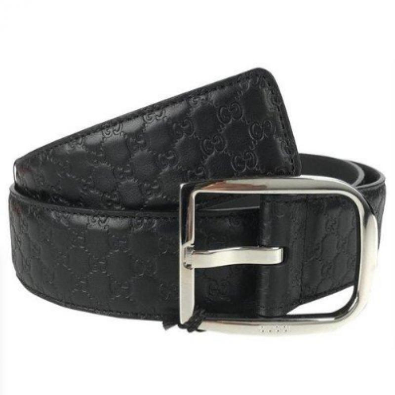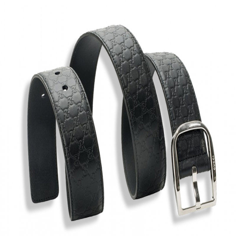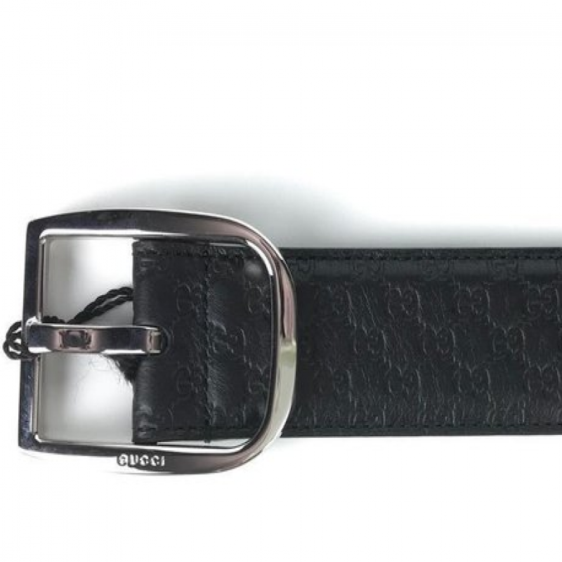 GUCCI/古驰 男士腰带经典 LOGO 压纹 银色针扣 黑色 皮质4cm宽 有细微划痕 防尘袋或品牌礼盒随机配发