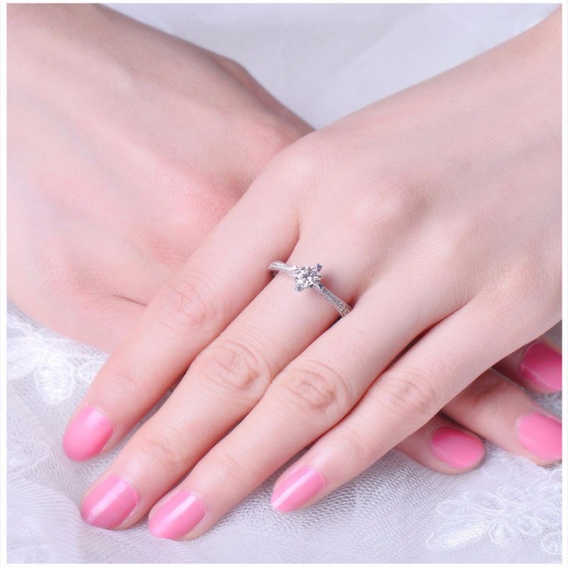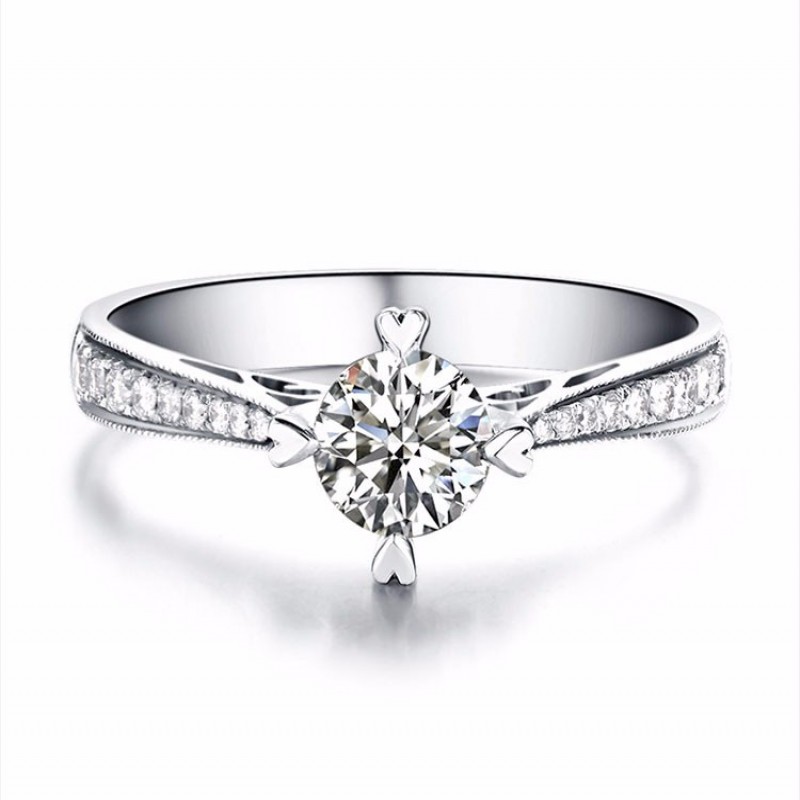 ZOCAI/佐卡伊 情定威尼斯 白18k金四爪钻戒女求婚结婚钻戒婚戒 定制