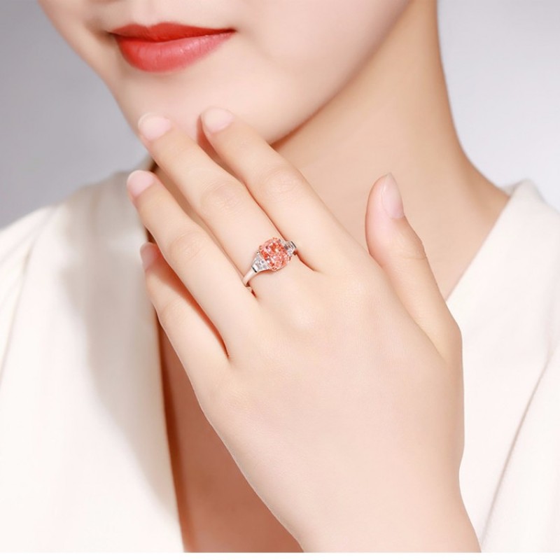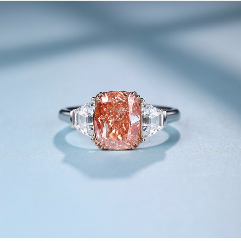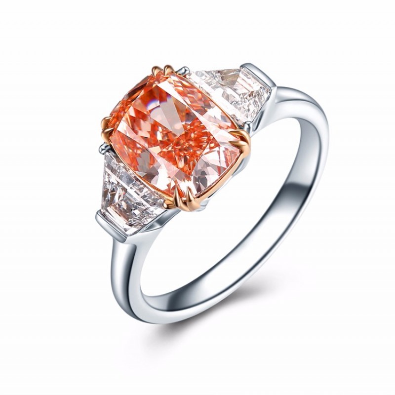 GIA证书 ZOCAI/佐卡伊3克拉枕形橘色钻戒奢华异形钻 定制