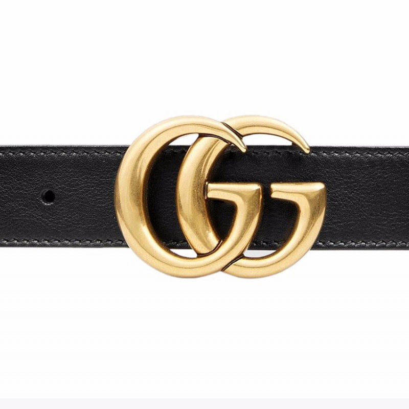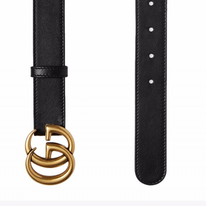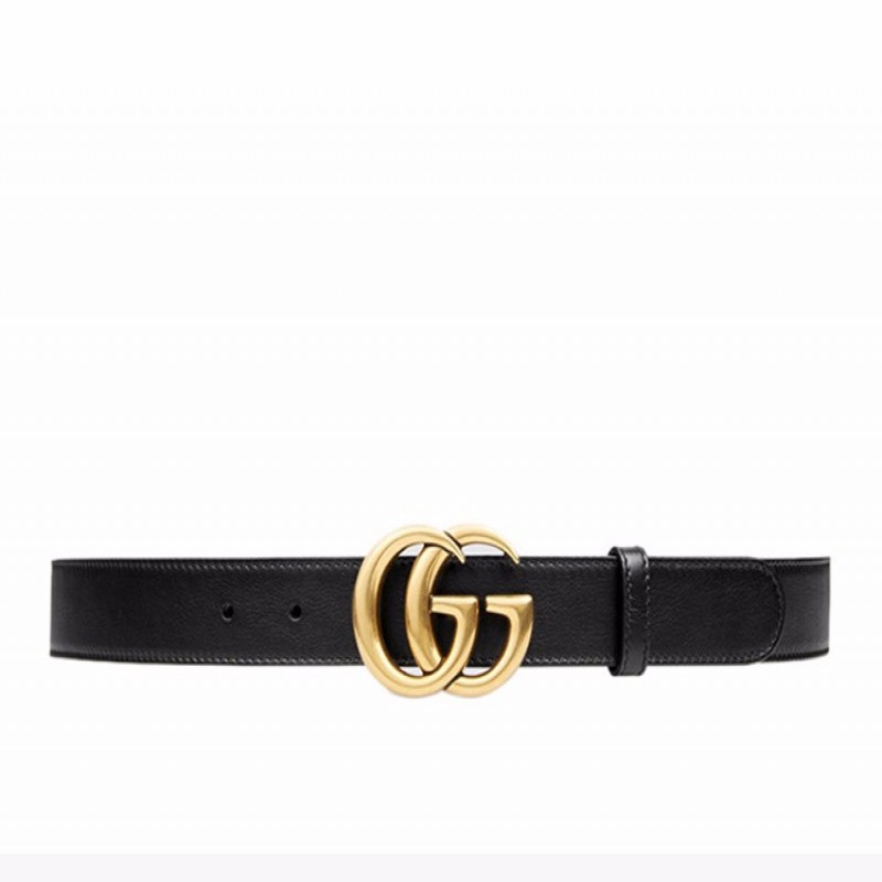 【七夕情人节好礼 男女同款】GUCCI/古驰 【20春夏新款 明星同款】男女同款黑色皮革金色双G搭扣商务休闲腰带皮带 414516-AP00T-1000