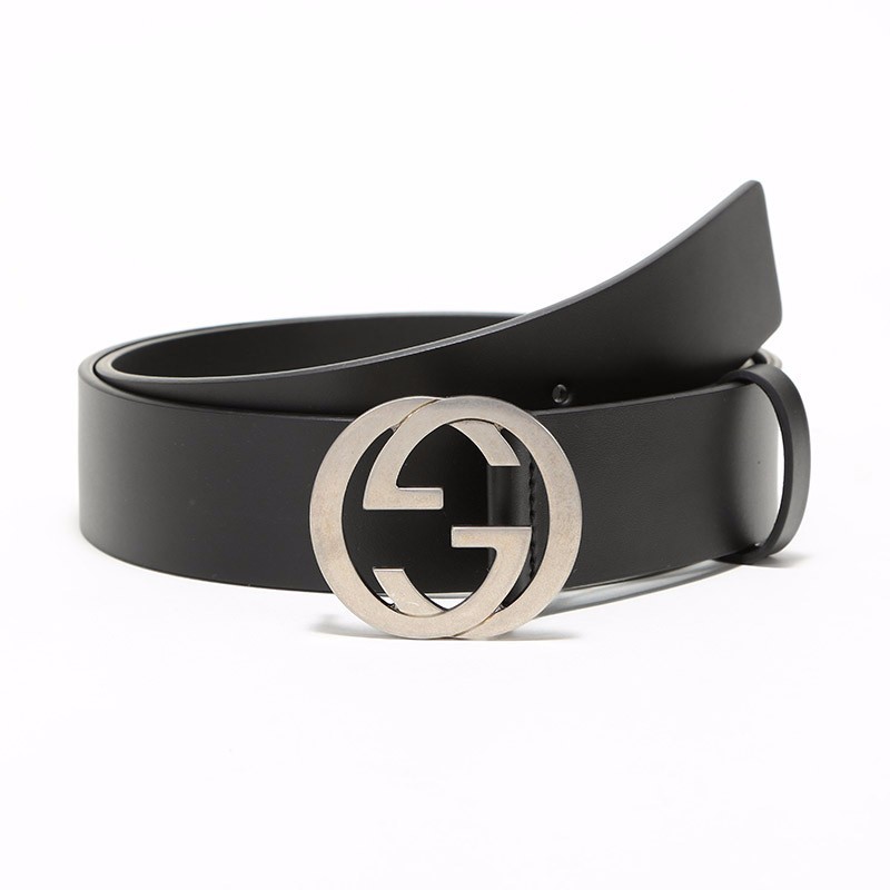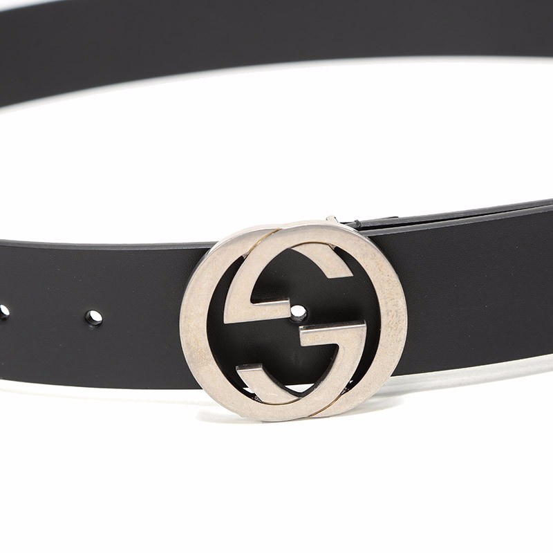 【现货秒发】GUCCI/古驰 男士做旧皮革板扣式 双GG LOGO腰带皮带