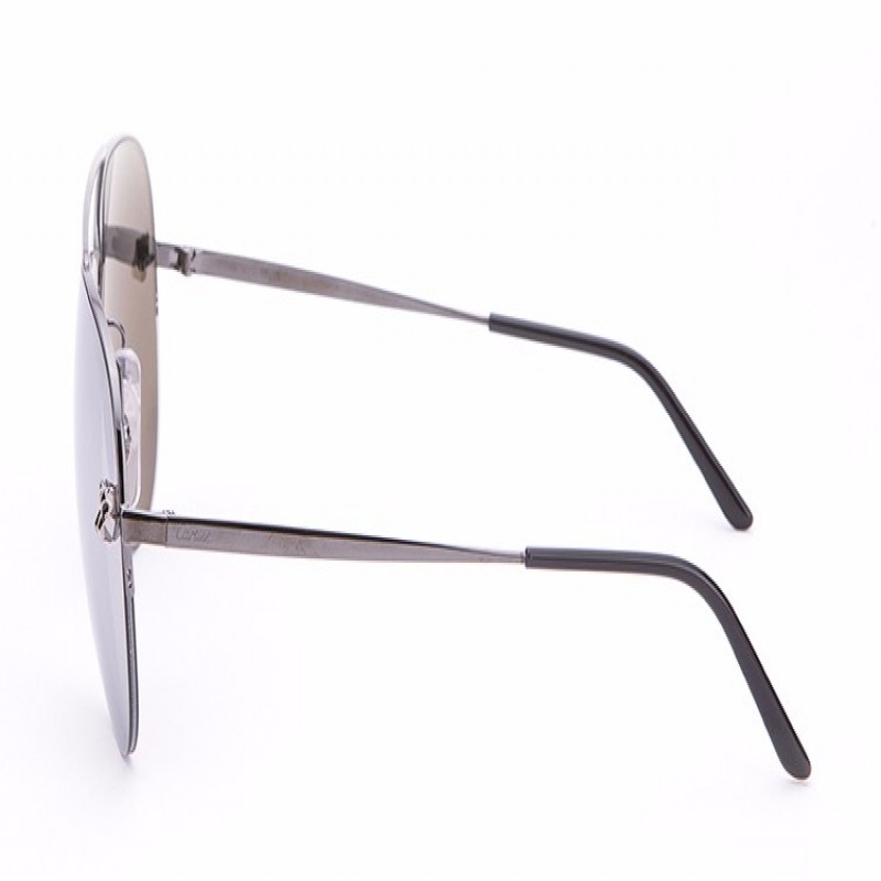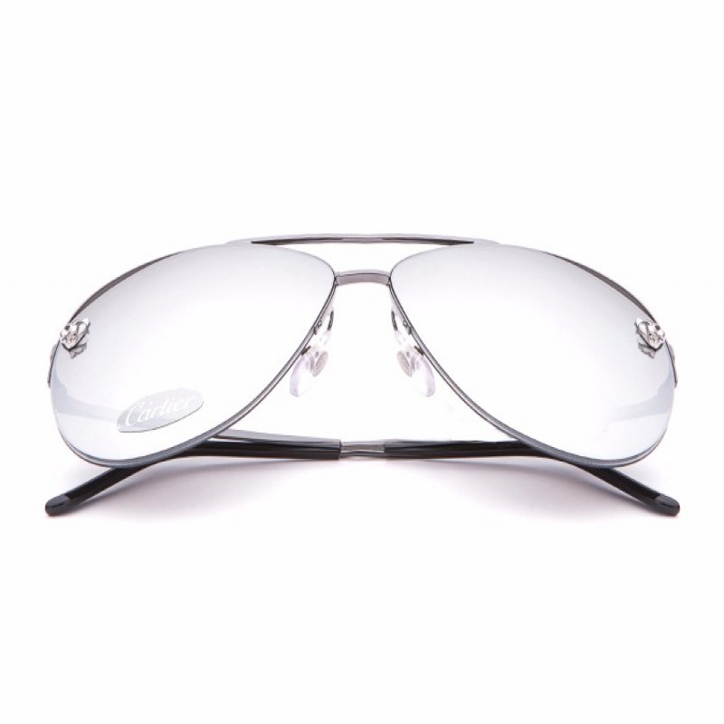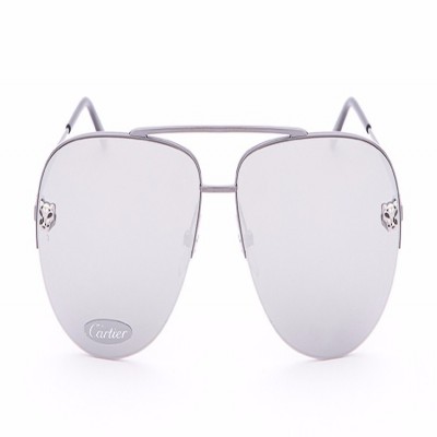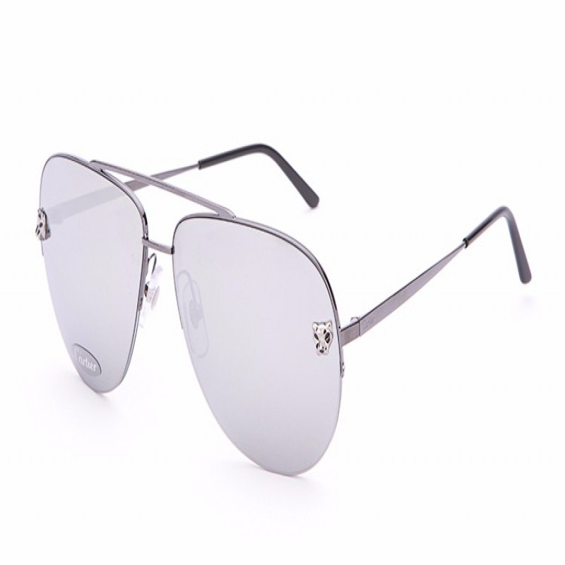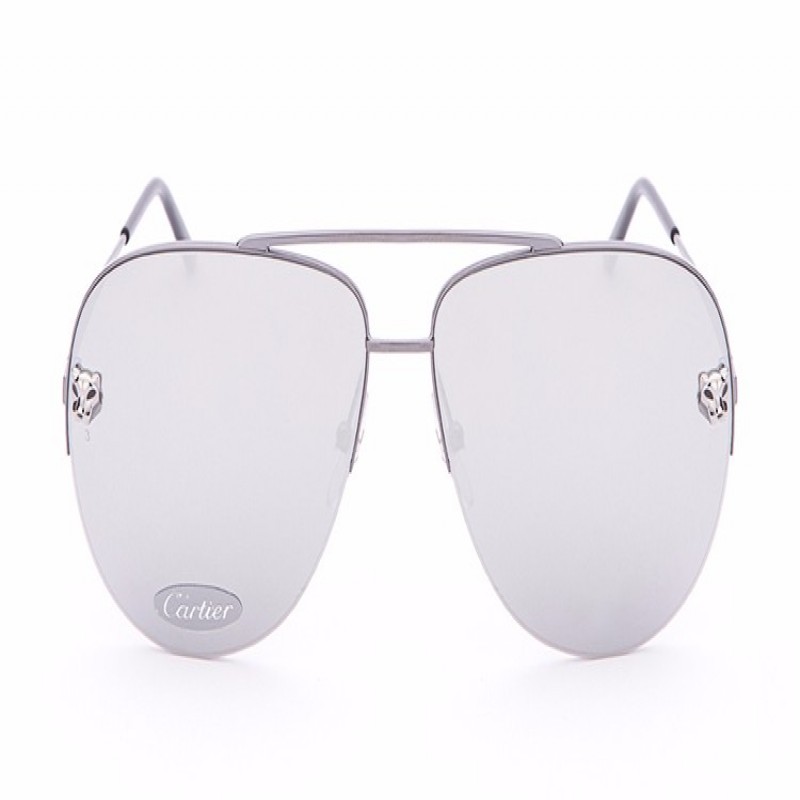 CARTIER/卡地亚Panthère de系列金属太阳眼镜抛光黑色PVD镀层饰面双层鼻梁架银灰色镜面效果镜片镀钌饰面豹头饰以黑漆斑点脚丝带Cartier标识男士墨镜太阳镜眼镜ESW00217