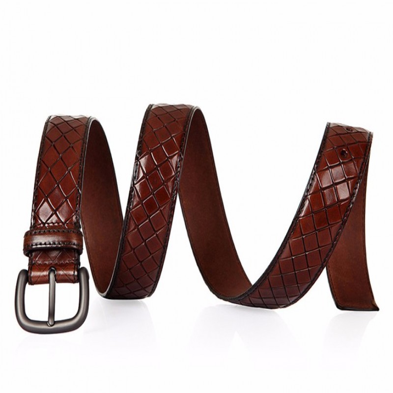【情人节礼物】Bottega Veneta/葆蝶家 BV 男士棕色小牛皮经典编织工艺皮带针扣式皮带腰带 261362-VQ240-2040