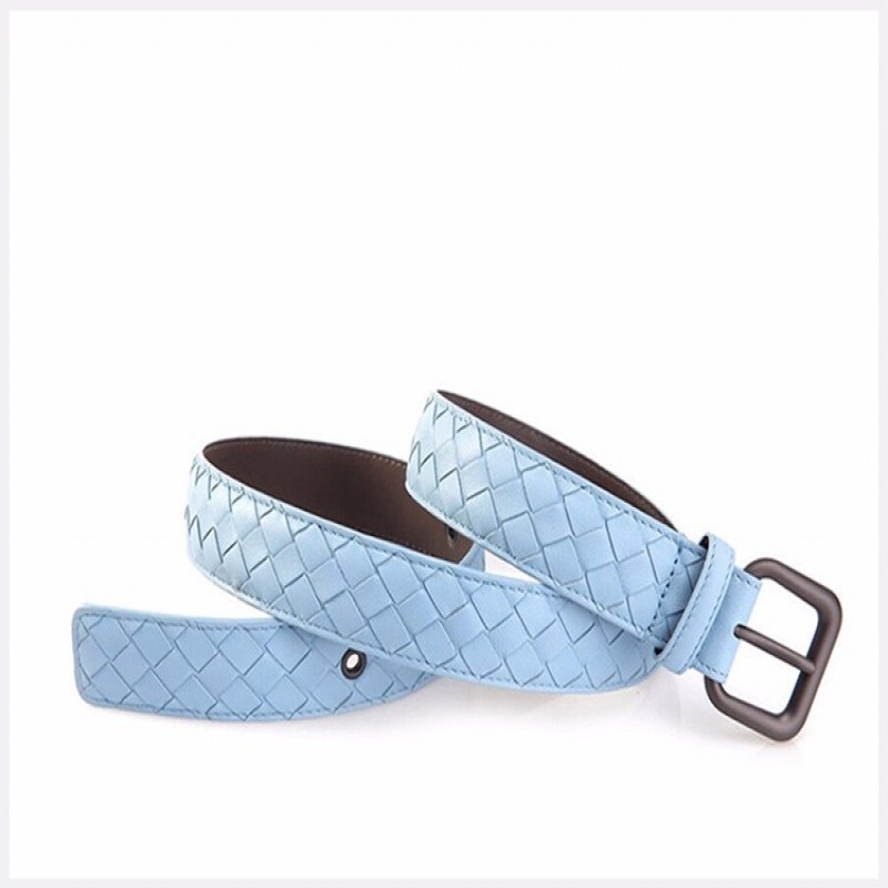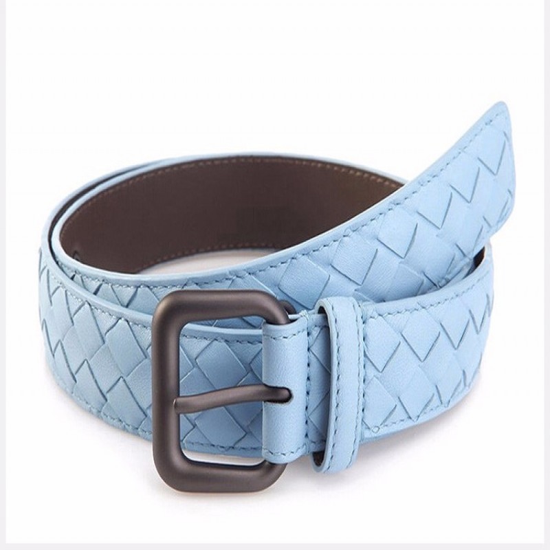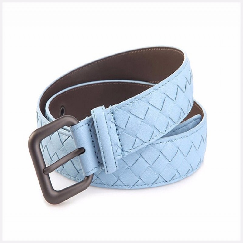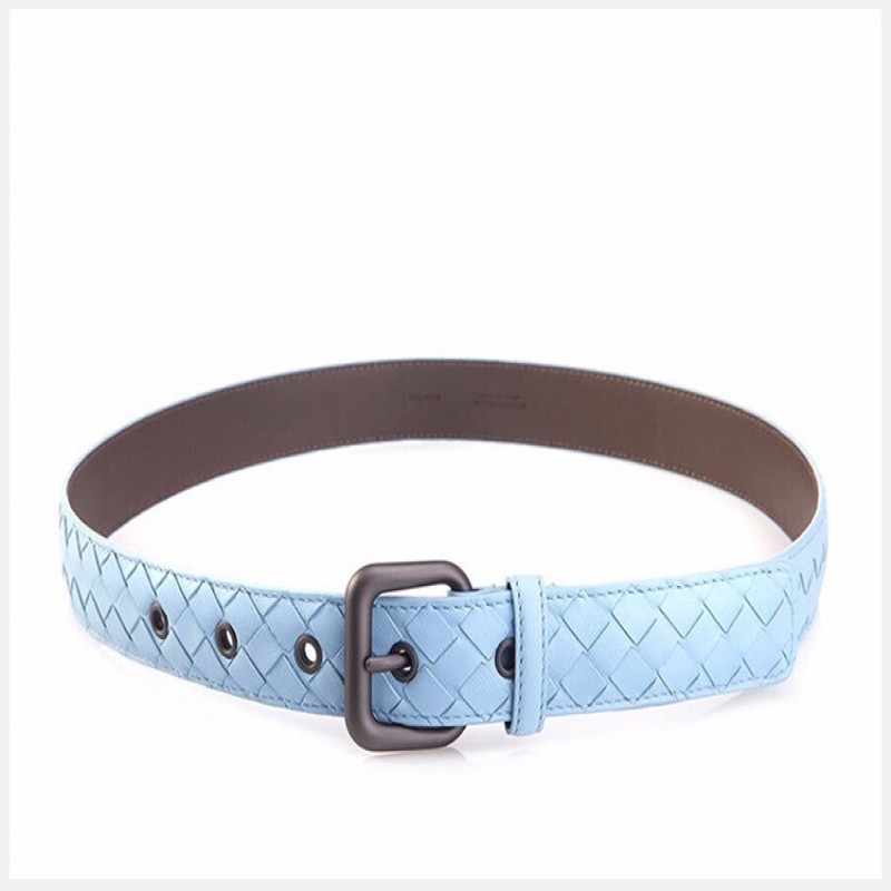 【情人节礼物】Bottega Veneta/葆蝶家 BV 女士蓝色羊皮手工编织针扣商务休闲皮带腰带 274470-V001O-4906