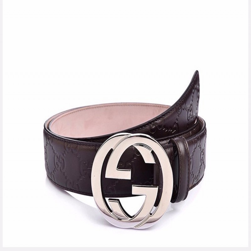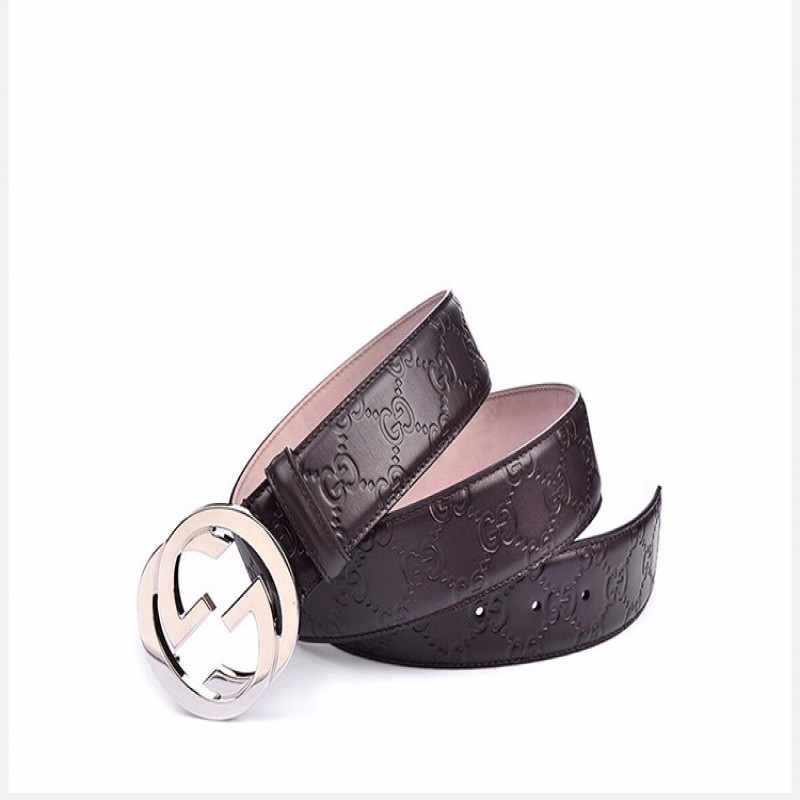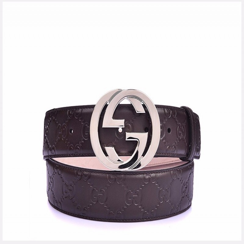 【情人节礼物】GUCCI/古驰 男士棕色GG压花牛皮商务休闲皮带腰带411924-CWC1N-2140