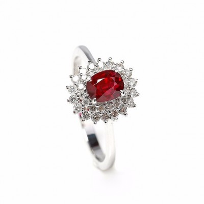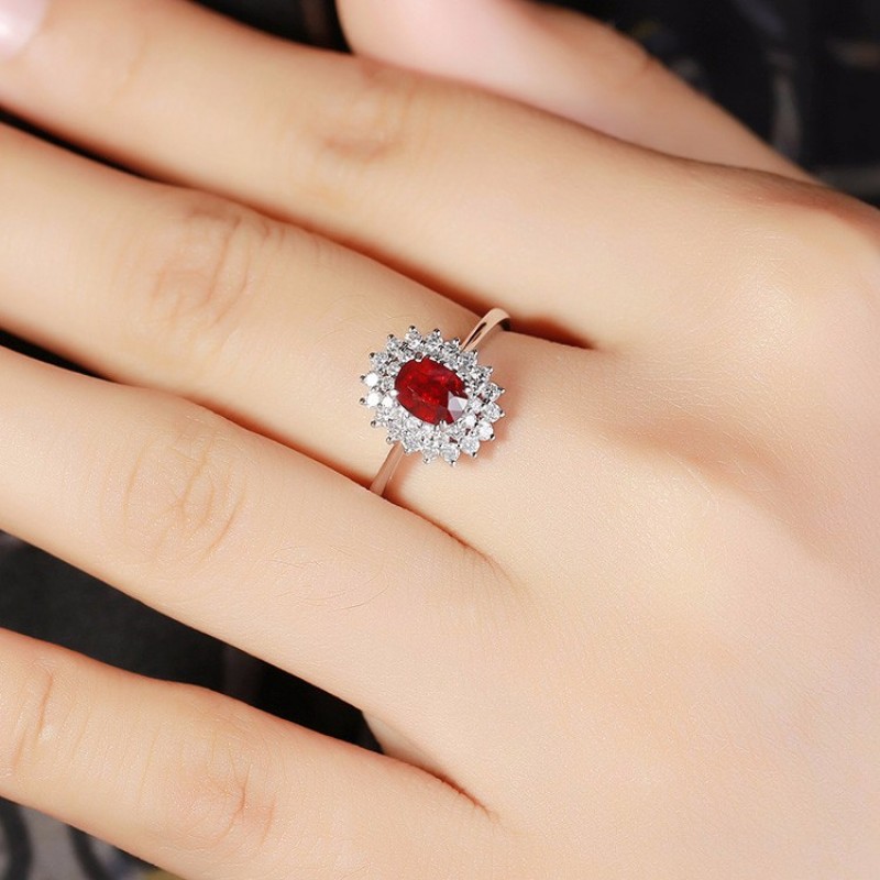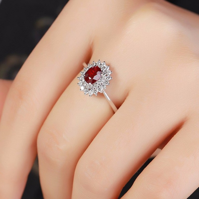 Daisy Fellowes/黛西法罗 18K金钻石红宝石戒指 蛋面彩宝围钻女戒