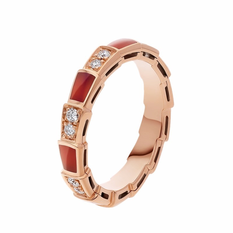 【包邮包税】BVLGARI/宝格丽 经典款红玉髓18K金玫瑰金带钻 蛇形戒指 353325