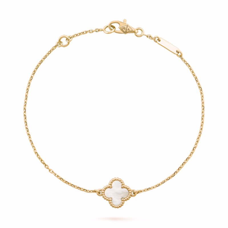 Van Cleef & Arpels/梵克雅宝 Sweet Alhambra MINI白色四叶草 黄色K金 珍珠母贝 女士手链 VCARF68800【7-15天发货】