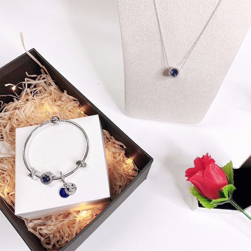 【情人节礼盒套装】PANDORA/潘多拉 情人节套装 QRJ-2 手链手镯项链套装 蓝色繁星童话套装